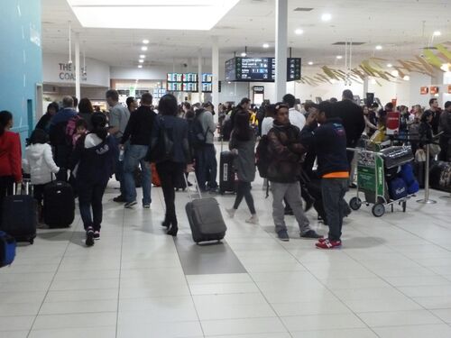 いきなりですが、ゴールドコースト空港で出国審査。荷物検査をするところが少ないのか、1つの列が延々と空港カウンター前の検査設備前に連なっています。 それにしても、なんでこんなに長いの? 途中、どこかの航空会社の地上係員が、フライトの名前と時間…